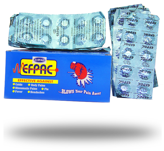EFPAC is used for the symptomatic relief of headaches, colds, catarrh, sore throats, menstrual cramps, joint, muscle and rheumatic pain, dental pain, and mild to moderate bodily pains.EFPAC also reduces body temperature during treatment of mild febrile conditions such as flu.